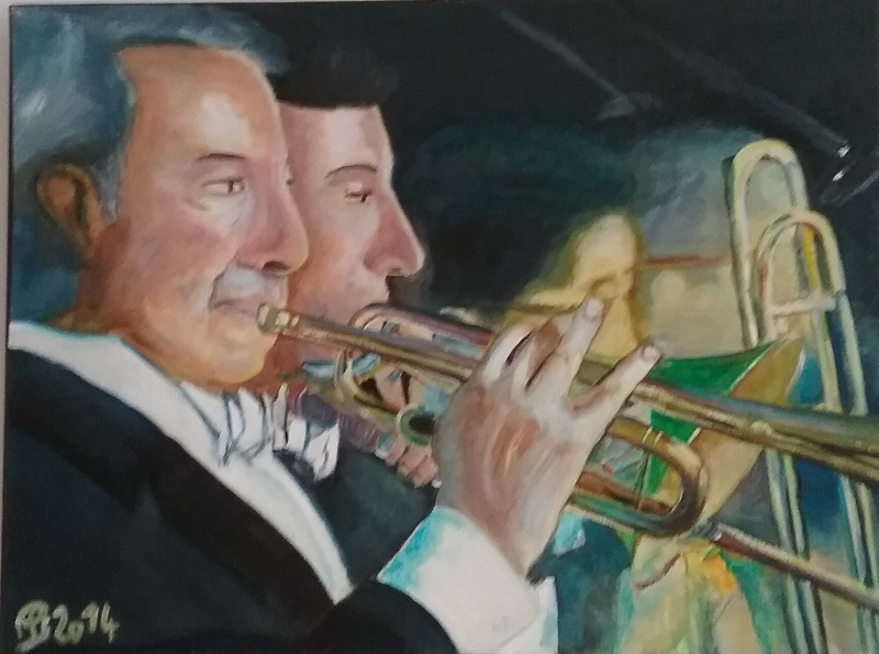 Autoportrait au Saxophone - Huile - 33 x 41 cm