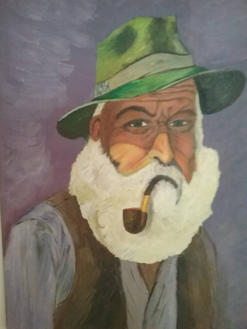 L'homme à la pipe - Huile - 24x33 cm - 1988